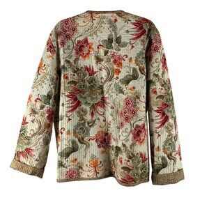 This versatile jacket combines a classic floral design with a quilted texture, offering a stylish yet practical layer for cooler weather.