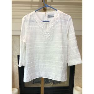 Alfred Dunner Women’s White With Rhinestones 3/4 Sleeve Blouse Size Petite 12