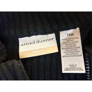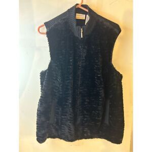 Alfred Dunn woman 16w zipper faux fur sweater vest black. measures 22" chest, 26.5" long. 100 poly. 55 cotton, 45 Acrylic.