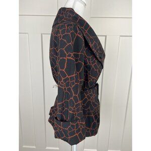 Ali Miles Animal Print Jacket Women's Sz 10 Black Rust Belted Portrait Collar