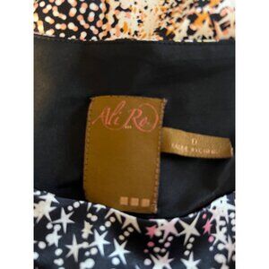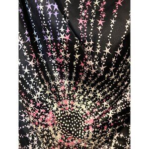 This pretty dress is from Ali Ro in a misses size 8. Star pattern against a black background.