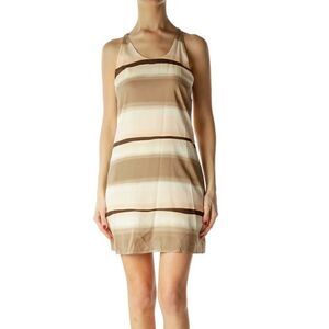 Alice & Olivia Brown & Tan Striped Racerback Silk Mini Dress. Size XS.