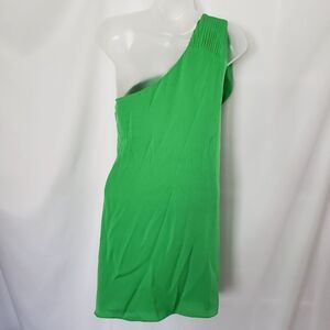 Alice + Olivia Green Silk One Shoulder Draped Ruched Dress