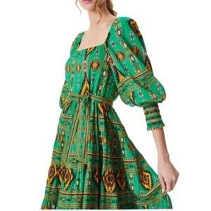 Alice + Olivia Rowen Square Neck Midi Dress Ethnic Bohemian Print XS NWT