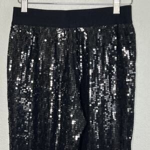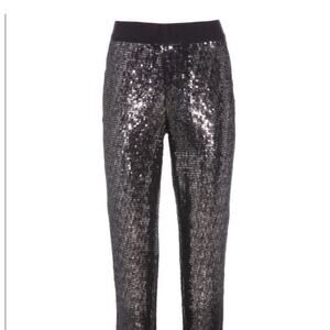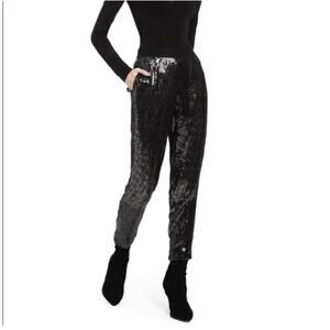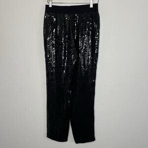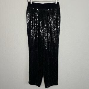 Alice + Olivia Sequence Straight Leg Pull On Pant Black Cocktail Small Vegas i17