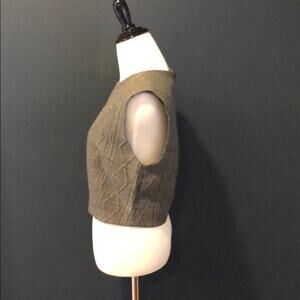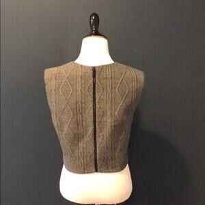 Alice + Olivia gray knit crop top. Crew neck, sleeveless. Back exposed zip closure, texture throughout. Shell: 38% wool, 38% acrylic, 24% polyester. Lining: 94% polyester, 6% elastane.