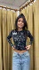 Long sleeve, cropped, black with white pattern, Basquiat graffiti