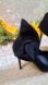 Super stylish suede heel. Small platform on the front of the heel with a 5 in stiletto heel. Sude flower detail on ankle. These shoes are new although the bottoms are dirty, they have never actually been worn outside.