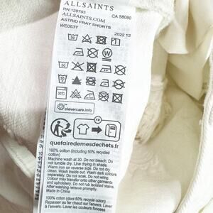 All Saints Astrid Fray Shorts High Waisted Distressed Cream White Size 30 NWT