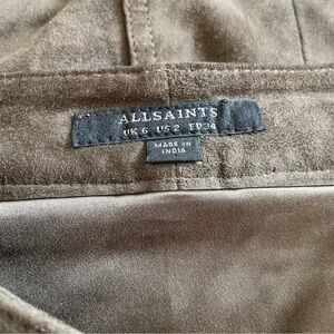 Gorgeous goat leather suede Routledge mini skirt from ALLSAINTS. In excellent condition. Style: WL1171. Approximate measurements laying flat: 13.25” waist, 17.5” hips, 17” length.