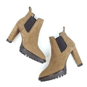 All Saints Harper Lug Sole Suede Ankle High Heeled Boots US 11 NWOB