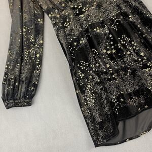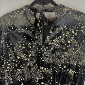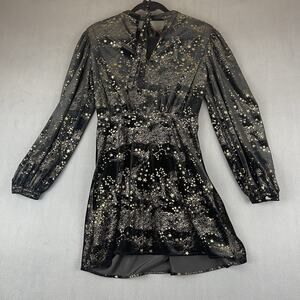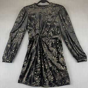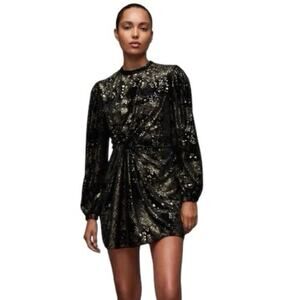 All Saints Jemima Star Dress Black Velvet Metallic Gold Printed Faux Wrap Size 4