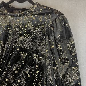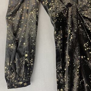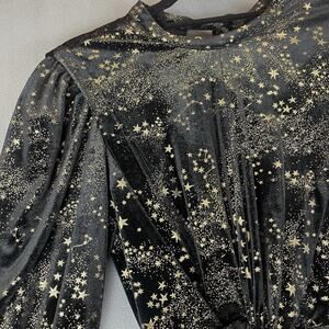 All Saints Jemima Star Dress Black Velvet Metallic Gold Printed Faux Wrap Size 4. Fabric has some stretch to it. New without tags.