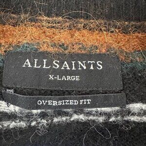 All Saints Oversize Fit XL Wool Alpaca Blend Stripe Crew -Neck Sweater