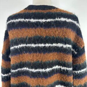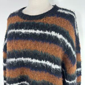 All Saints Oversize Fit XL Wool Alpaca Blend Stripe Crew -Neck Long Sleeve Sweater