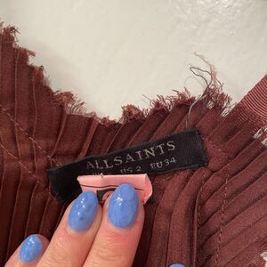 All Saints Sleeveless Pleated Slip Mini Dress Burgundy 2