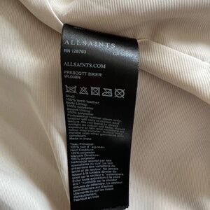 AllSaints leather jacket purchased years ago and worn only a handful of times. Only visible sign of wear is some mild red color transfer on the back of jacket (see 2nd last photo).