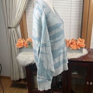 Allsaints Tiga Sweater blue v neck pullover tiger stripe wool alpaca