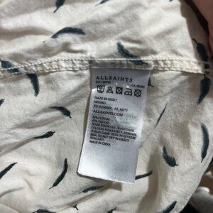 All Saints white and blue feather print short sleeve button down shirt