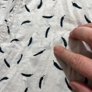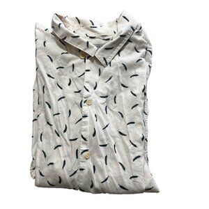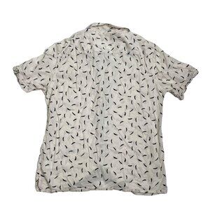 AllSaints men's shirt XL white blue feather print short sleeve button down