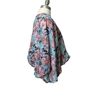 Allen B Floral Sheer Flutter Short Sleeve Elastic Smocked Blouse Size Large