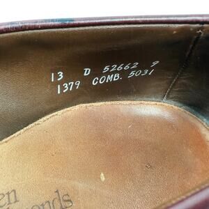Allen Edmonds Loafer Size 13 D Burgundy Leather Chelsea Dress Kiltie Tassel in Very Good pre-owned condition. Light wear on the upper and sole. Clean inside. There are light marks, scratches, scuffs and creases from use.