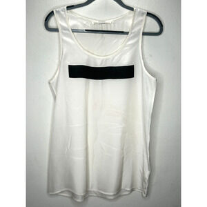 Allsaints Off-White 100% Silk Long Line Tank Top Black Rectangle Block Front 8