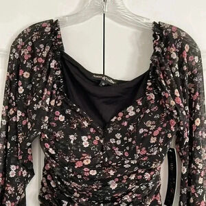 Almost Famous Black Floral Long Sleeve Crop Top With Built-in Bra