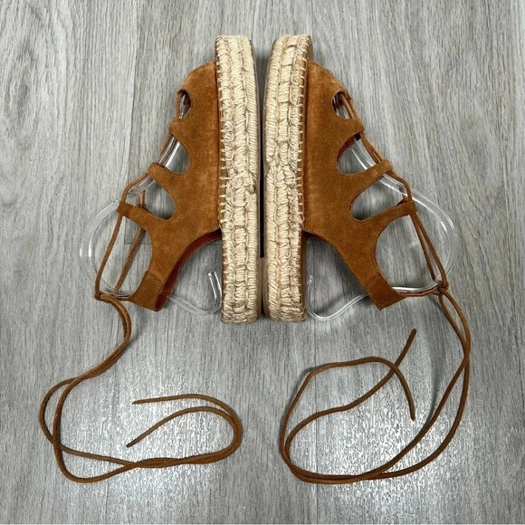 Alohas Gladiator Sandals in Camel Lace Up Suede Espadrilles Size 37