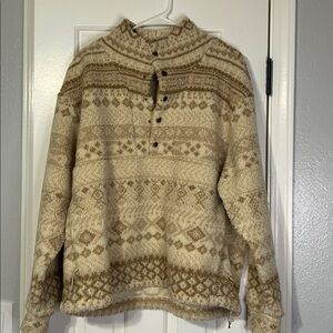 Stylish varsity jacket by Alpine Design. Features cream and brown pattern. Perfect for casual wear.
