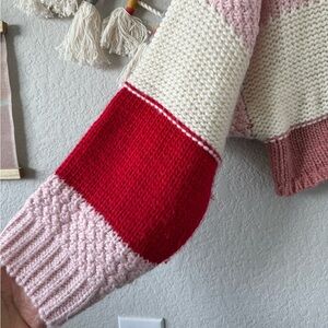 Altard State Chaya Chunky Open Knit Colorblock Sweater Cozy Coquette Pink Boho L