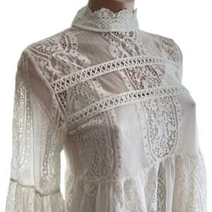 Altard State Crochet Lace Bell Sleeve Lined Top Ivory Sheer Boho Festival Large