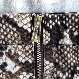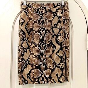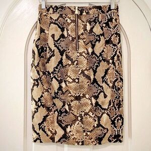 The perfect combo of sexy & elegant, this python print pencil skirt is from French luxury brand Altuzzara's Target collection. A beautiful print ranging rom deepest browns to beige, 9 inch front side slit and trademark "Altuzzara" zipper, with gold back zip detail for a little extra flash! Form fitting and curve hugging, hits around knee length.