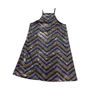 Multi-color sequin (100% Polyester). Shift. Sleeveless. Square neckline. Fully lined. 36" from shoulder to hemline. Imported.