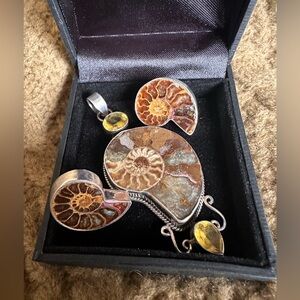 Amazing custom made Ammonite Fossil Jewelry Set with Citrine Accents