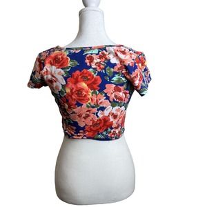 Ambience Apparel Women Crop Top Medium Short Sleeve Floral Scoopneck