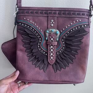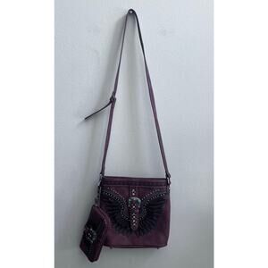 American Bling Wing Buckle Western Boho Crossbody and Wallet Set-Brown NWT