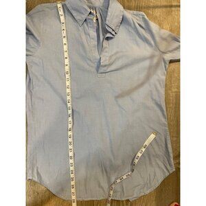 American Colors by Alex Lehr Blue V Neck Collared Long Sleeve Blouse Sz M