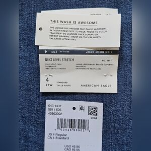 New with tags, not attached, will be in pocket, never worn. Next Level stretch Regular high-rise "kick boot crop" Jeans with raw hem, in size 4. Color may vary due to camera lighting.