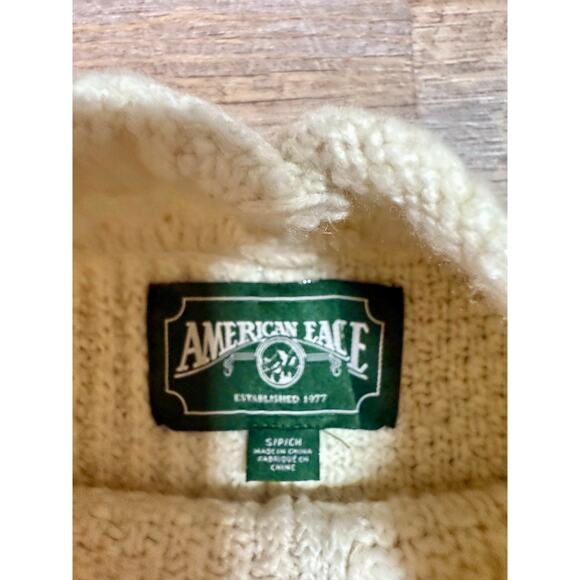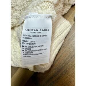 Elevate your wardrobe with this cozy American Eagle cream-colored sweater! In excellent used condition, this size small sweater features a stylish mock neck and trendy drop sleeves.