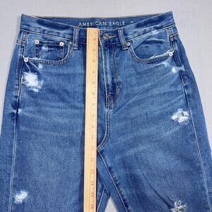 American Eagle Jeans Women 4 The Mom‎ High Rise Cropped Jeans Distressed Raw Hem