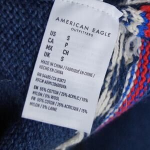 American Eagle Men's Fair Isle Sweater Cotton Wool Blend Christmas Crew Small