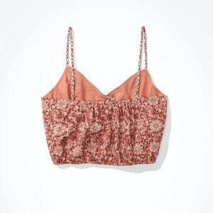 American Eagle Multi-Print Floral Linen Blend Cropped Cami Tank Top