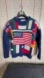 Vibrant sweater with flag motifs. Features red, blue, green, and white.