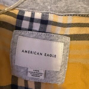 American Eagle Outfitters Red and Blue Casual Button Down Shirt