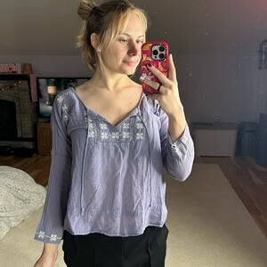American Eagle: Periwinkle Purple Floral Embroidered Top