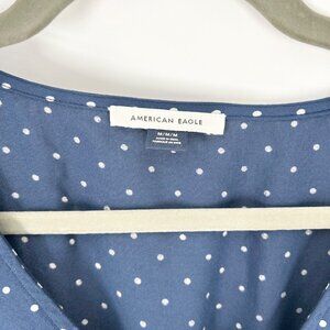 American Eagle Polka Dot Short Sleeve Button Front Cropped Top