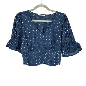 American Eagle Polka Dot Short Sleeve Button Front Cropped Top (Sample Piece)