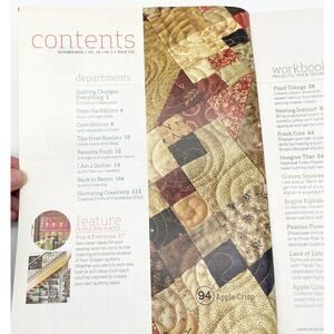 October 2010 issue, No. 106, Better Homes and Gardens Creative Collection, includes "Strip-Pieced and Scrappy" techniques, two bed-size quilts, four great sewing studios, appliqué tutorials, and stash-busting quilt designs like “Apple Crisp” and “Granny Squares,” 112 total pages