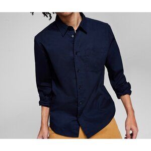 And Now This Men's Poplin Long-Sleeve Button-up Shirt Navy Size S NWT